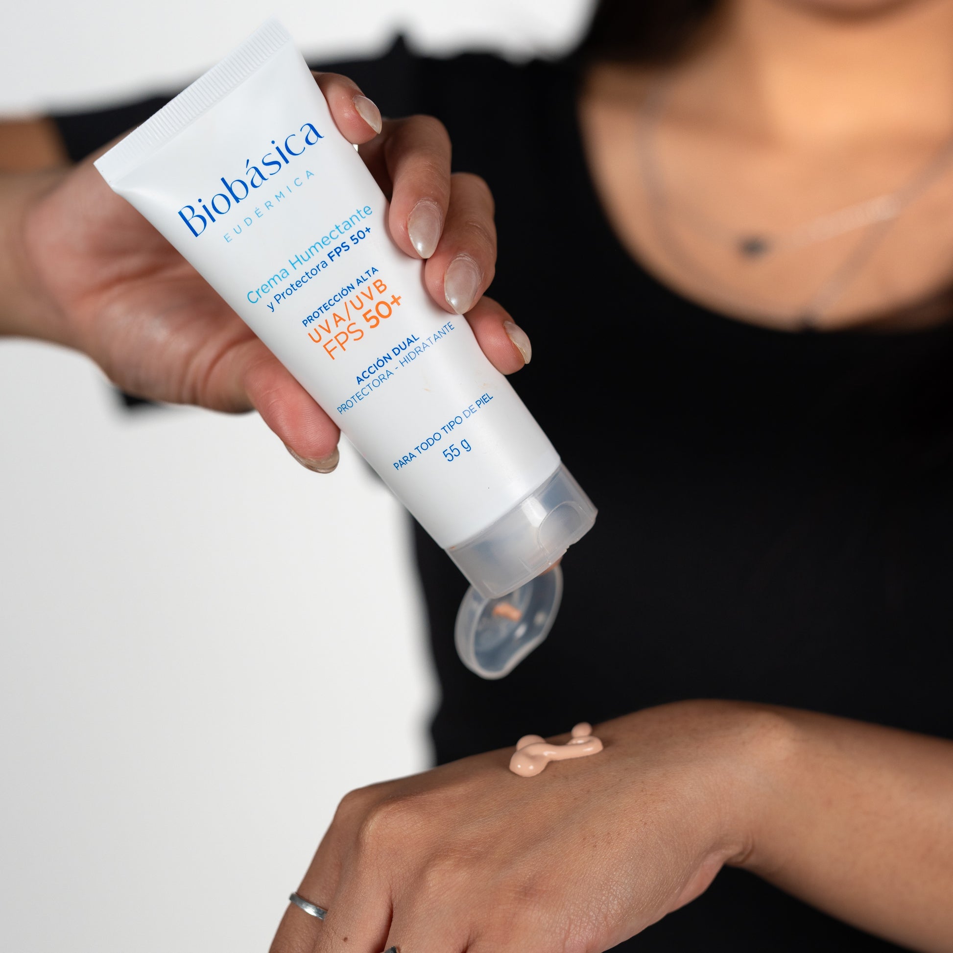 Crema Humectante y Protectora FPS 50+ es una fórmula avanzada que combina la alta protección contra radiaciones UVA y UVB con propiedades hidratantes.